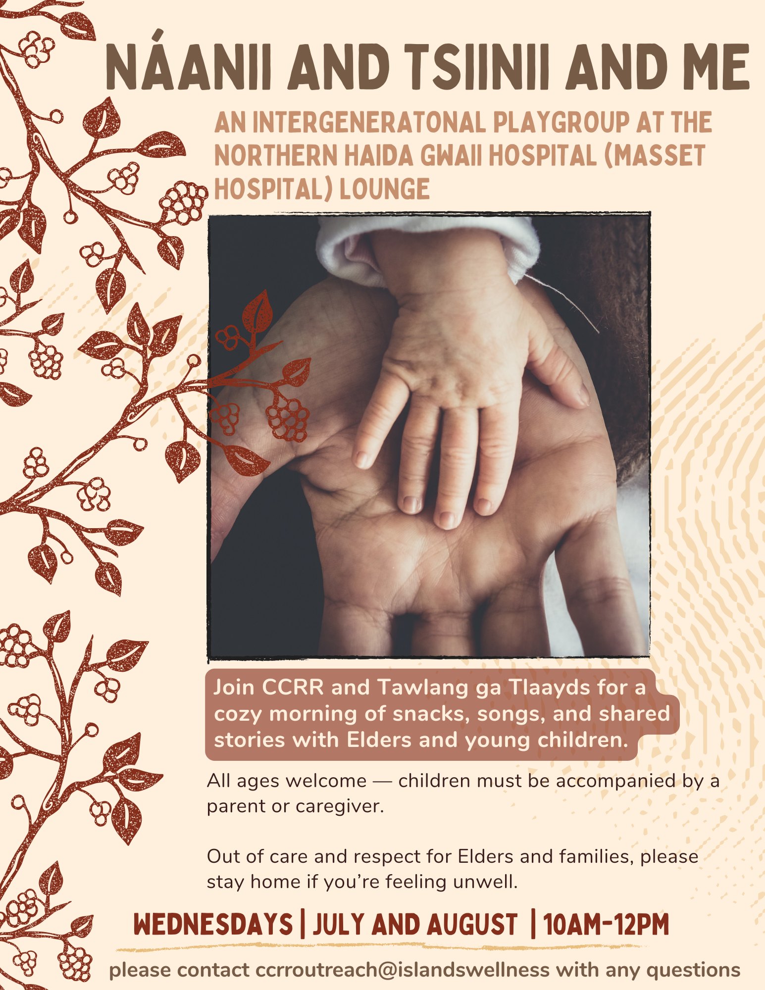 Join CCRR and Tawlang ga Tlaayds for a cozy morning of snacks, songs, and shared stories with Elders and young children.
